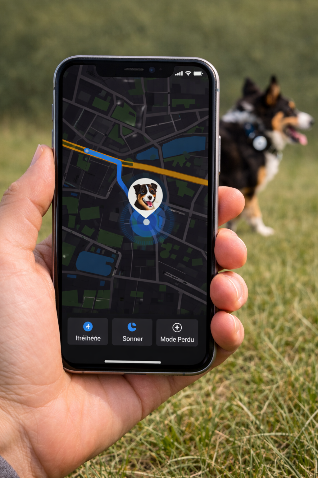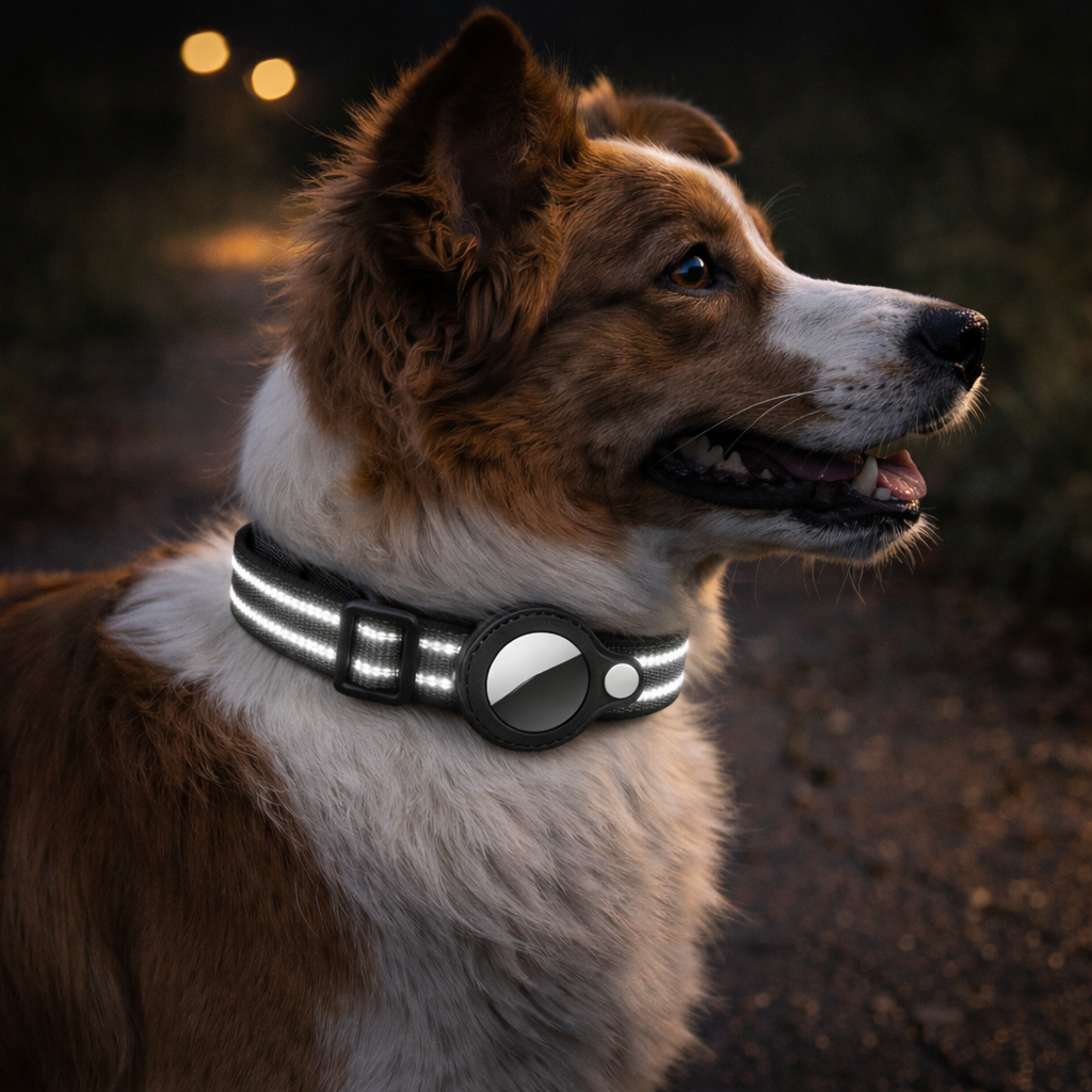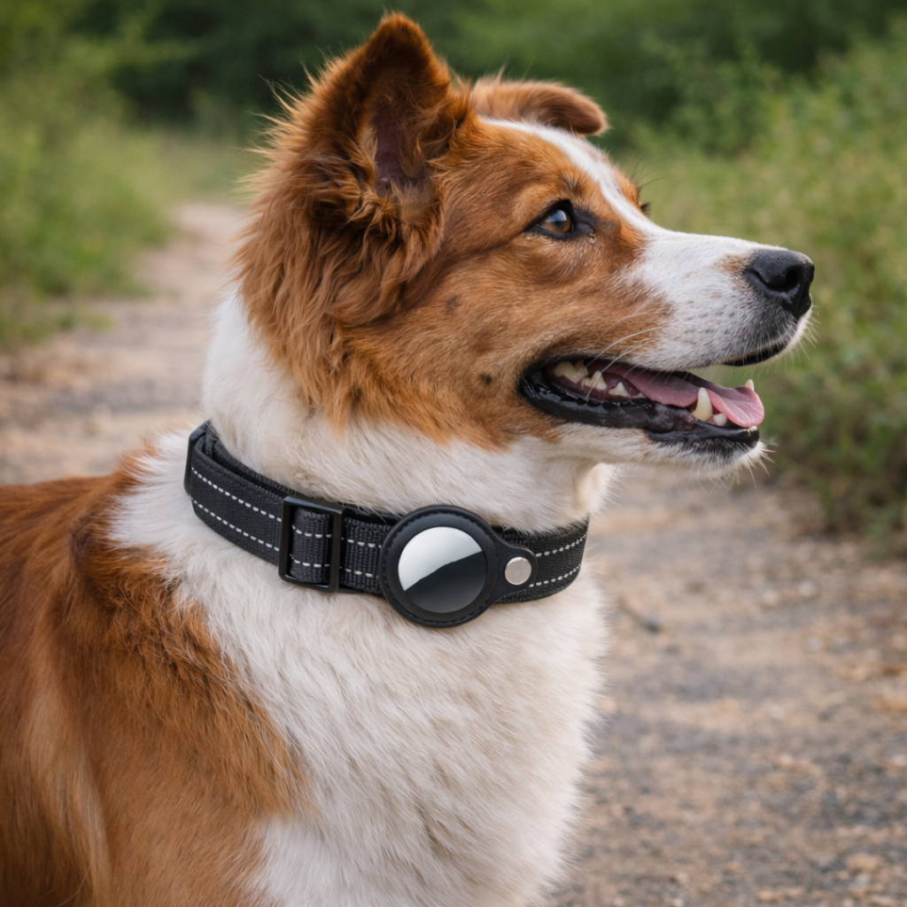 Notre collier compatible AirTag a été conçu pour vous permettre de localiser votre compagnon à tout moment, directement depuis votre iPhone. Que ce soit lors d’une balade, en voyage ou si votre chien s’échappe accidentellement, vous savez toujours où il se trouve.
